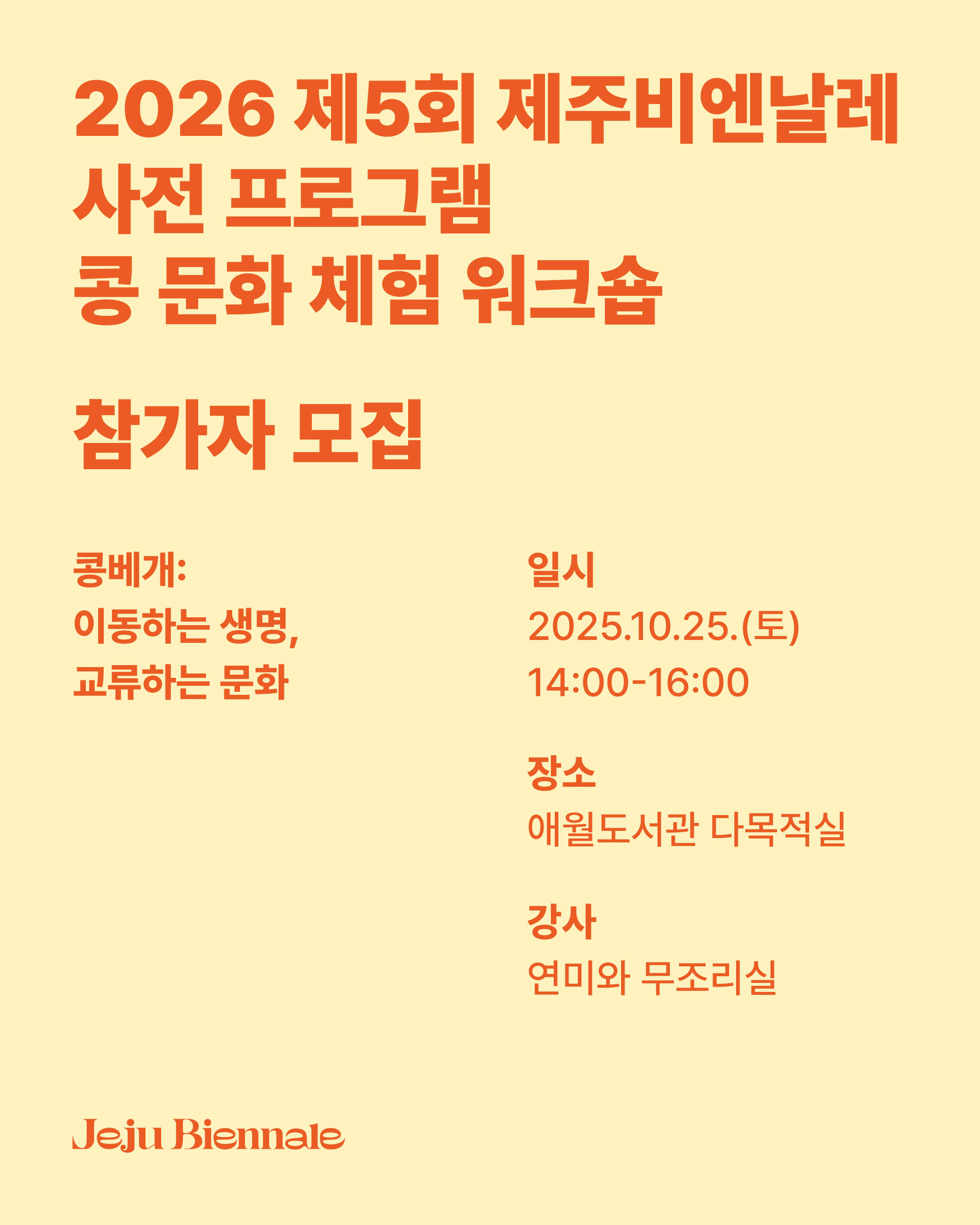 2026 제5회 제주비엔날레 사전 프로그램 콩 문화 체험 워크숍 참가자 모집